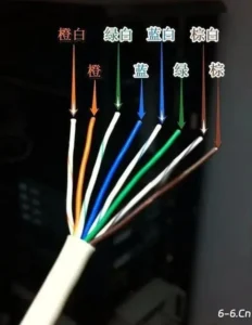 网线从左往右的颜色排序是: 橙白、橙、绿白、蓝、蓝白、绿、棕白、棕。(8岁就开始背,背了30多年,比我老婆名字记得都熟)